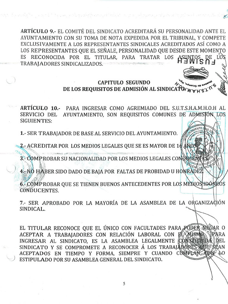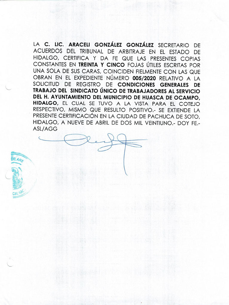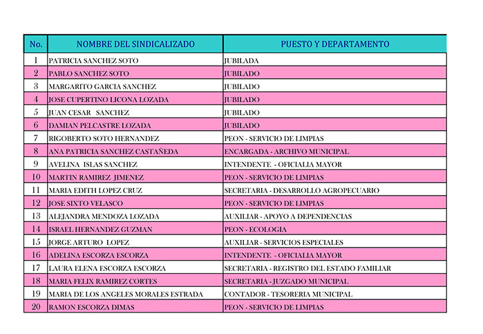 SINDICATO UNICO DE TRABAJADORES AL SERVICIO DEL HONORABLE AYUNTAMIENTO MUNICIPAL DE